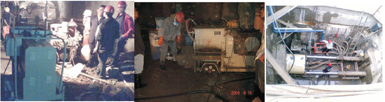 6、被动升压,当浆液灌满后,压力逐渐升高, 便于控制盒保持灌浆压力。 7、灌浆压力达到设计压力后,可反转卸压。 8、采用搅拌灌浆一体化,可方便的用于移动较频繁、 场地狭窄等工程。 9、配合空压机和喷射器,可进行作业表面的喷护。 适用范围 本机可广泛用于公路、铁路隧道、城市地铁、水电站 地下洞室等锚固灌注浆工程及压力注浆工程,还可以 用于工程内外墙底层及罩面层的喷护施工。 还可根据户需求定制双液和防爆型。 |