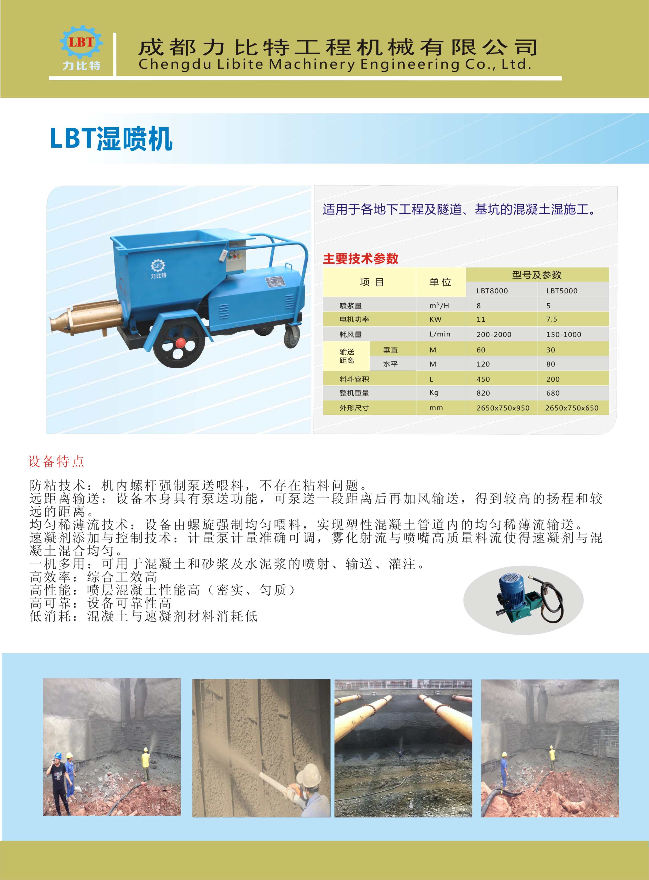 湿喷机是目前国内外降低粉尘、减少回弹、提高施工质量等综合性能较好的土木工程锚喷支护设备。目前广泛应用于公路、铁路、水电站、矿山、国防等隧道及地下工程施工中。